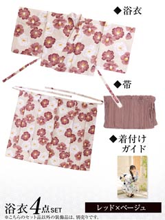 [セパレート浴衣] フェミニン椿柄浴衣[4点SET]【2025年新作/YUKATA by dazzy】