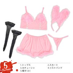 ファー付きピンクバニーちゃんコスチュームセット[5点SET/ハロウィン][2018ハロウィン/コスプレ]