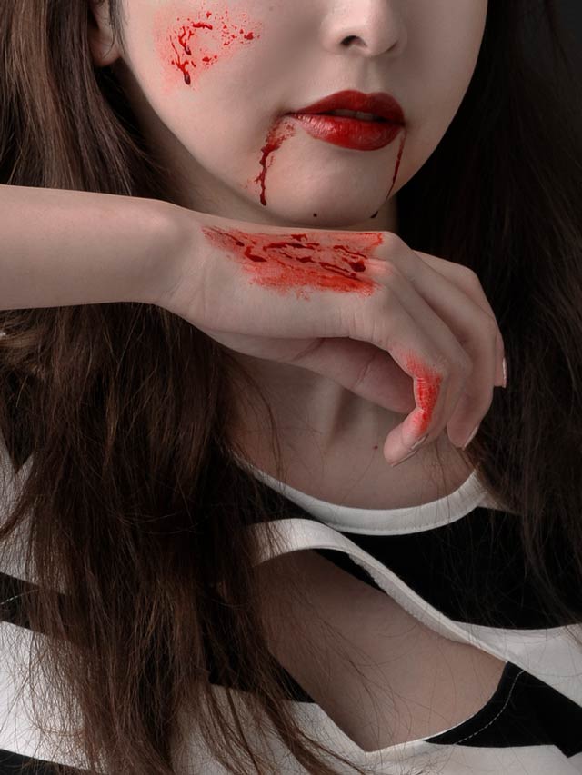 ※衣類に付着した血のりは洗っても落ちません。汚れても良い衣類にご使用ください。