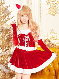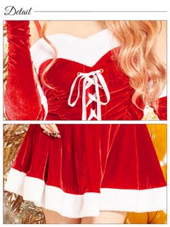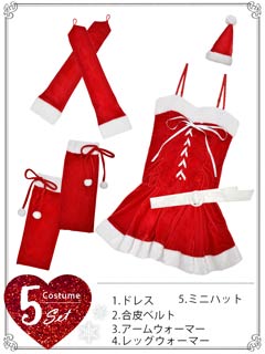 [5点セット]シャーリング編み上げリボンサンタドレスセット[2017サンタコスプレ]