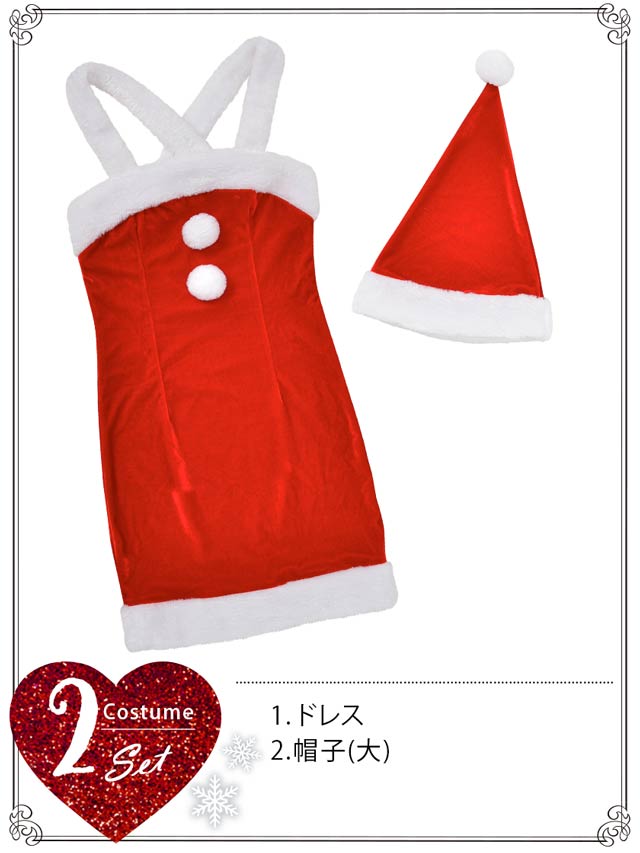 [2点セット]バッククロスサンタドレスセット[2018サンタ/コスプレ]