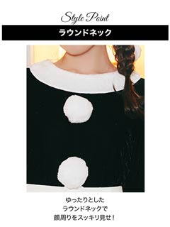 大きなポンポンが可愛いラウンドネックのシンプルなフレアワンピースサンタコス。定番タイプだから露出が苦手な方にもおすすめ!誰でも着こなせるのでイベント初めての初心者さんも着やすい♪