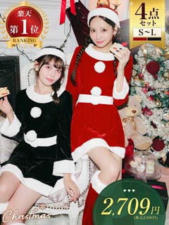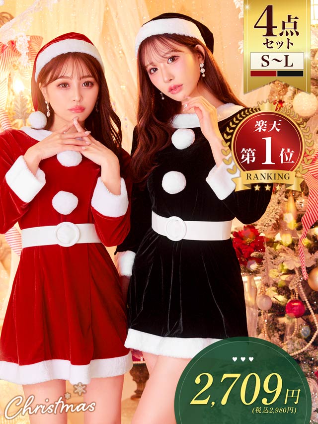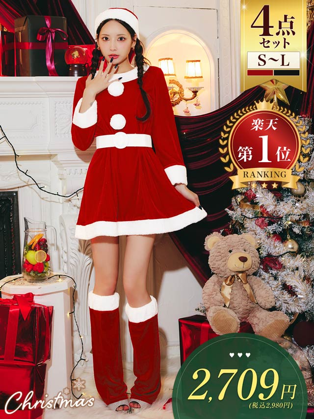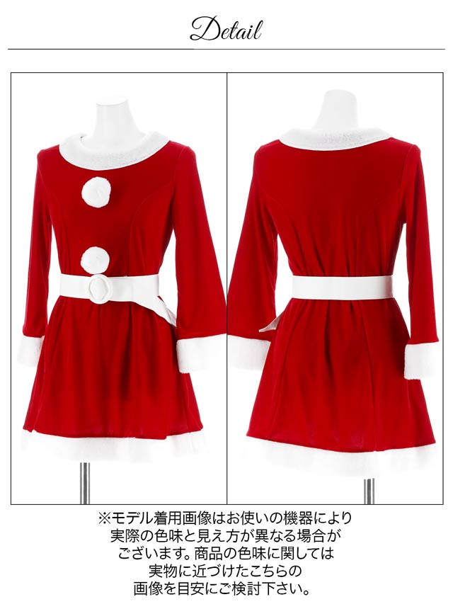 [4点SET]ベルト付きフレアサンタワンピースセット【2025サンタ/コスプレ】