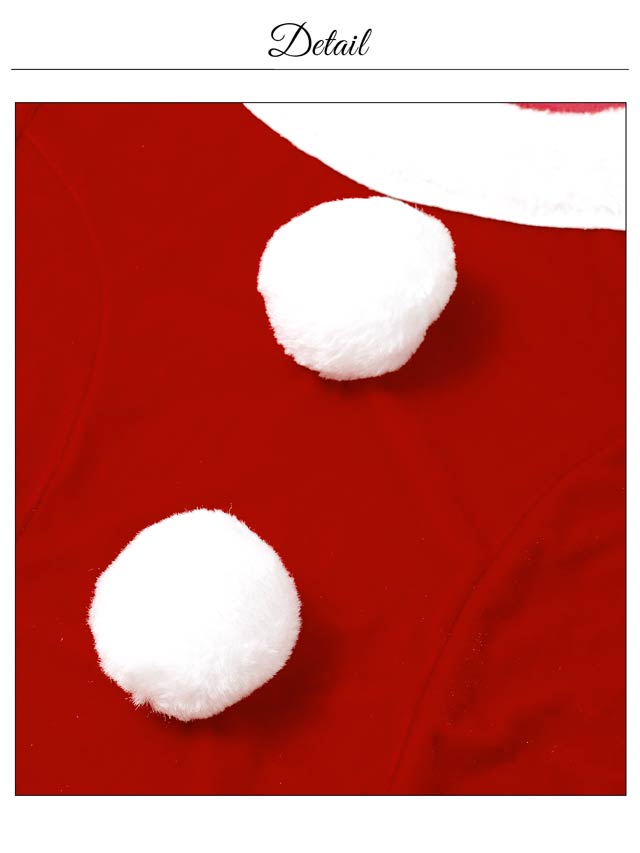 サンタコスプレ商品の白地部分に程度の差はあるものの、メイン生地の色移りがある場合がございます。検品はしっかりと行なっていますが、デザインの仕様上ある程度の色移りが出てしまう旨、ご了承の上ご購入よろしくお願い申し上げます。
