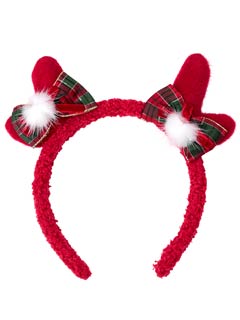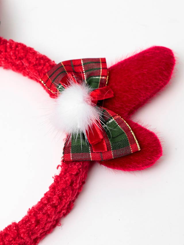 レトロガーリーなクリスマスチェックにポンポンファー付きのリボンがキュートなトナカイ耳カチューシャ。ふわふわ素材に色鮮やかなレッドカラーで華やかさもアップ♪ 周りと差がつくサンタコスチュームのアクセントにぴったりなアイテムです◎