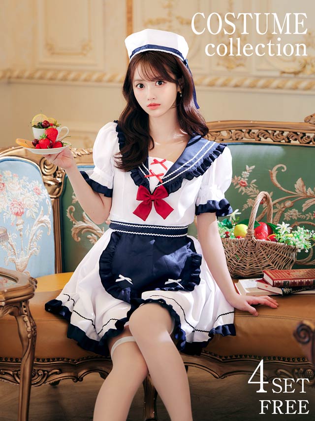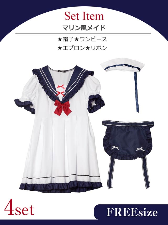 10/3新作![4点SET]マリンセーラーメイドコスチューム【2025ハロウィン/コスプレ】