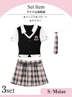 10/3新作![3点SET]アイドル風チェック制服コスチューム【2025ハロウィン/コスプレ】