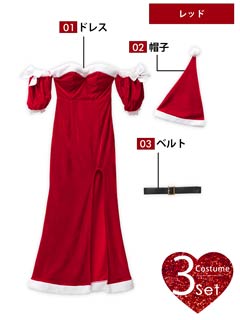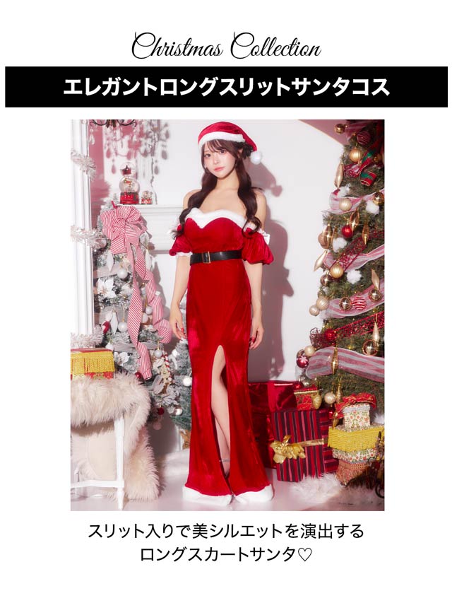 11/20新作!【3点SET】エレガントロングスリットサンタコス【2025サンタ/コスプレ】