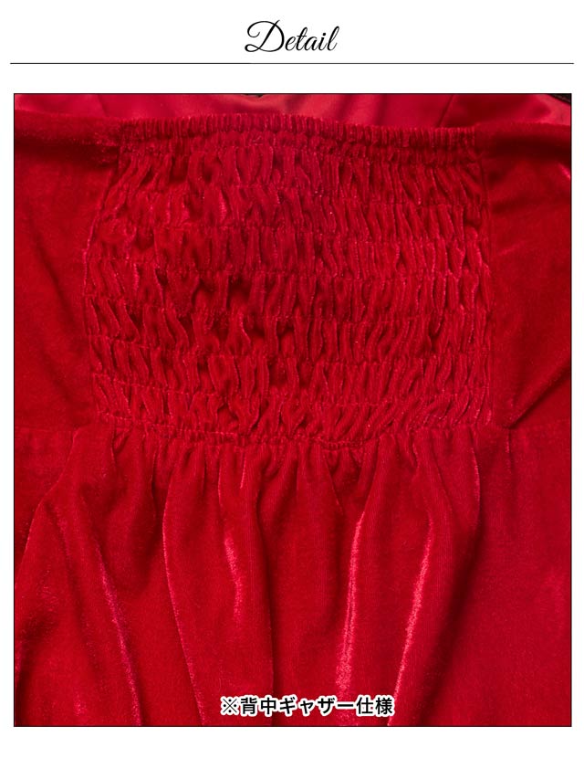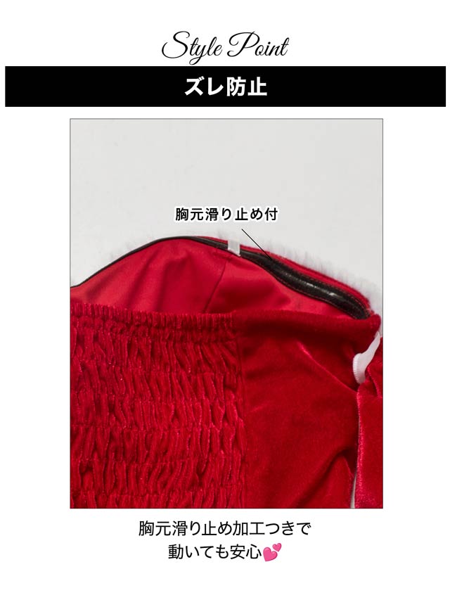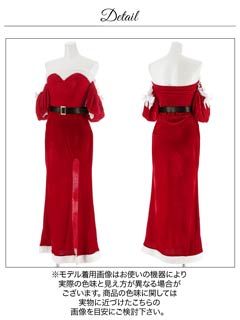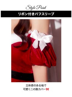 高級感漂う深みのあるベロア生地に、スリムなロング丈が大人な女性らしい美シルエットを演出するサンタコスチューム。胸元のハートカットデザインがワンポイント◎ オフショルダーやサイドスリットで色気を感じさせながら、袖には可愛いリボンを加え甘さと華やかさのバランスの取れた1着です。