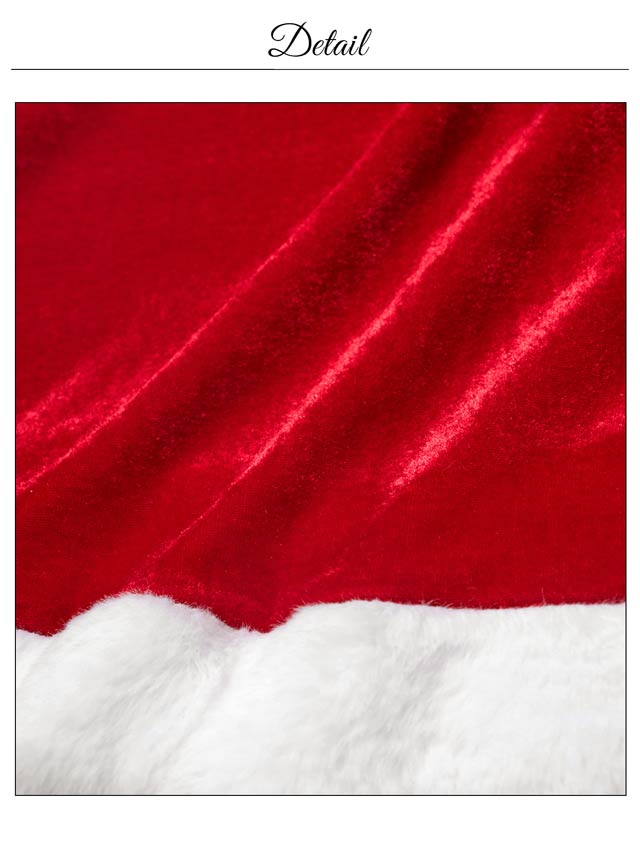 サンタコスプレ商品の白地部分に程度の差はあるものの、メイン生地の色移りがある場合がございます。検品はしっかりと行なっていますが、デザインの仕様上ある程度の色移りが出てしまう旨、ご了承の上ご購入よろしくお願い申し上げます。
