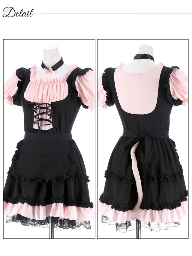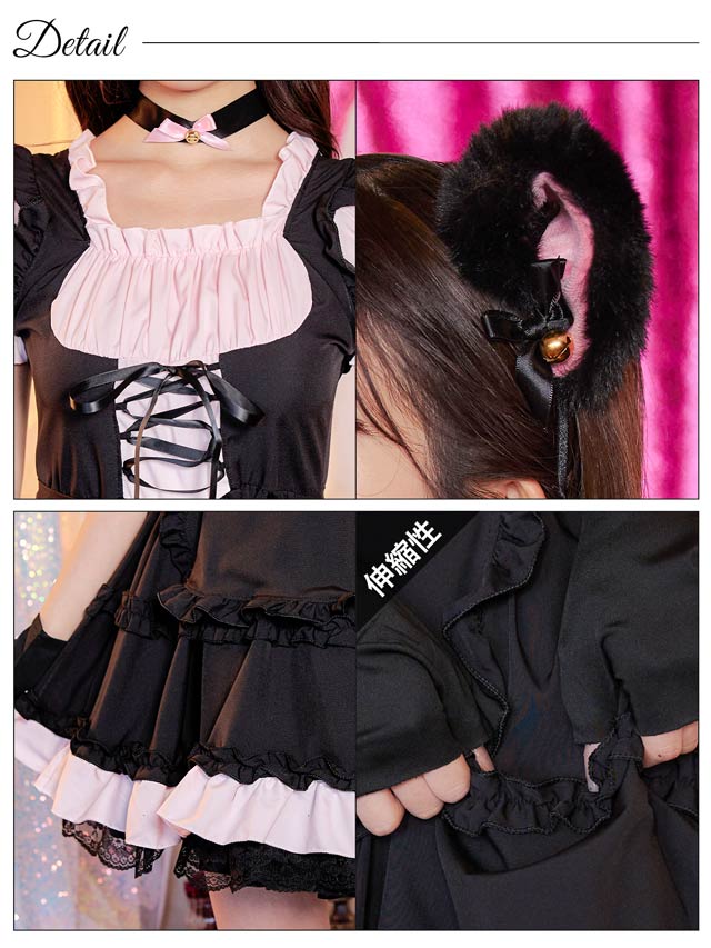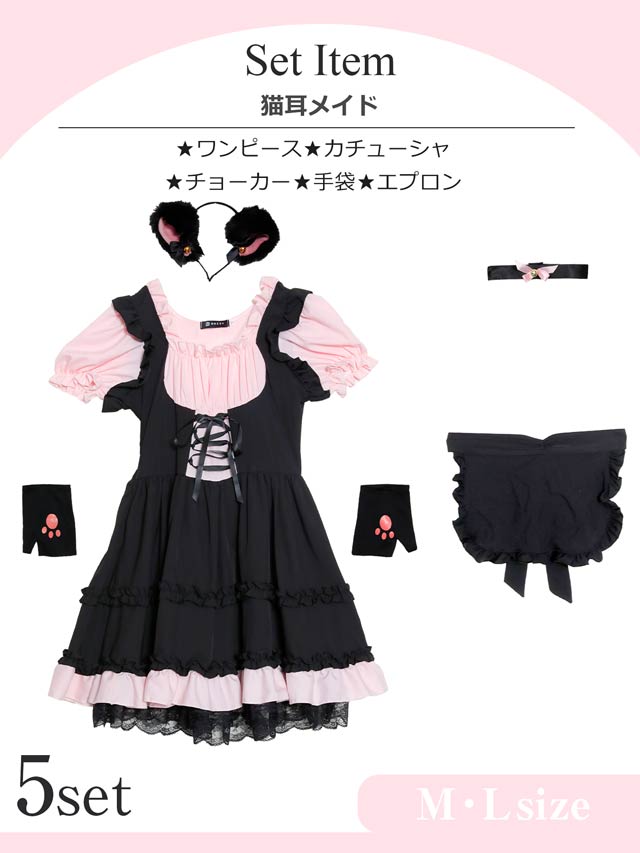 10/7新作![MLサイズ][5点SET]フリル猫耳メイドコスチューム[2サイズ展開]