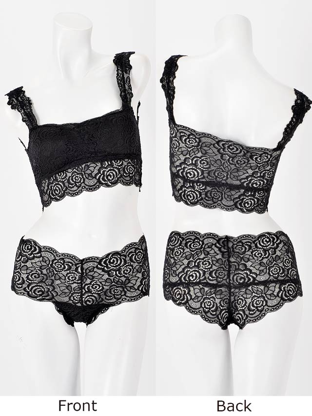 存在感のあるローズレースのノンワイヤーブラレット。ほどよく肌が透ける総レース仕立て。リゾートのお供に持っていきたいシンプルに着飾るリラックスウェア。