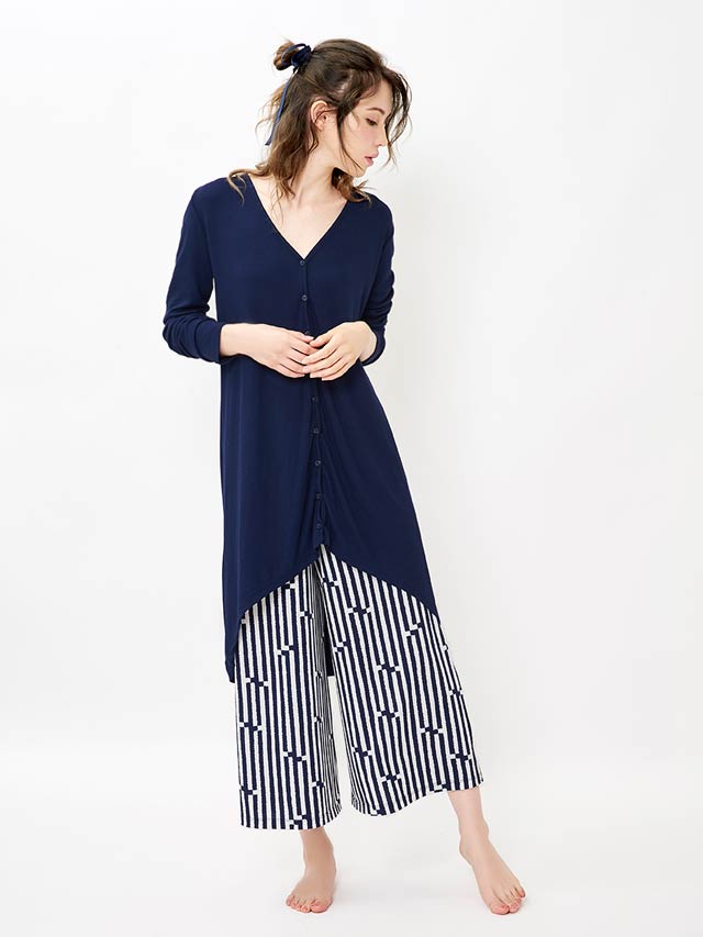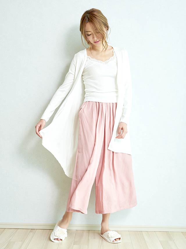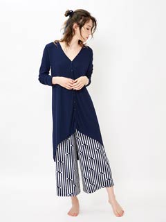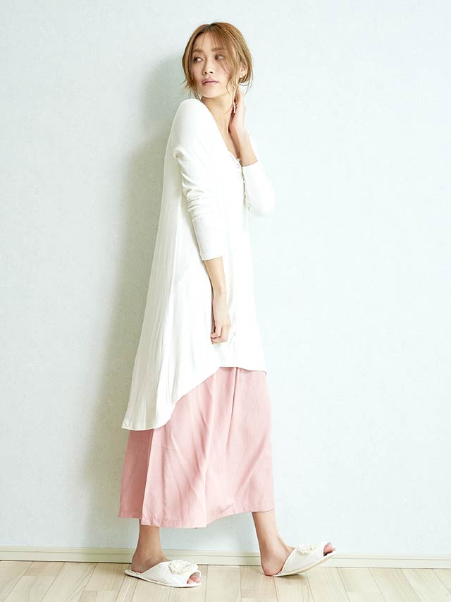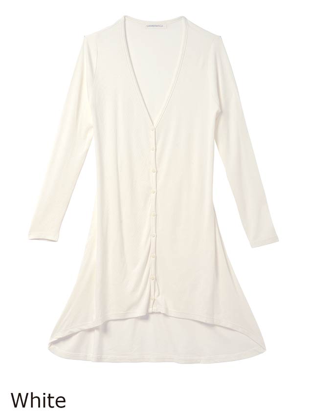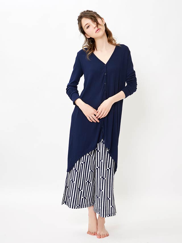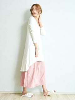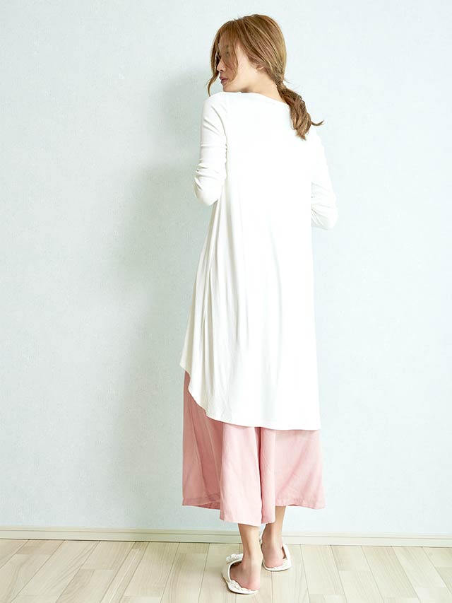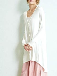 前は短く後ろが長い後ろ下がりのデザインなので、着るだけでコーデのバランスがとりやすく、重く見えないのも魅力的。お部屋の中だけでなく、春夏のお出かけにもうれしいアイテム。日除けはもちろん冷房対策にも重宝します。
