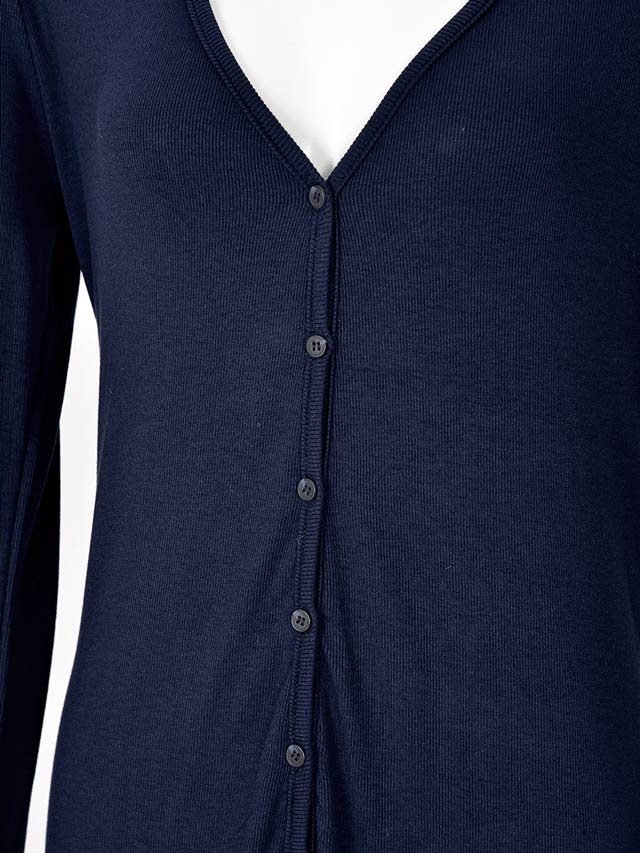 羽織るだけで自然とスタイルアップするロング丈。ボタンの配置にもこだわり、開きすぎずスッキリと着こなせる位置に仕上げています。ほどよくフィット感のあるきれいなシルエットに。