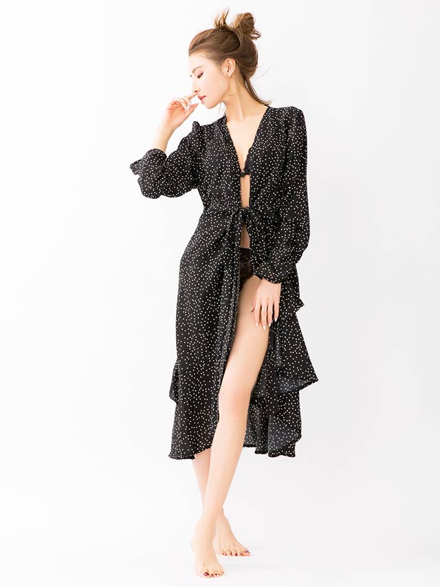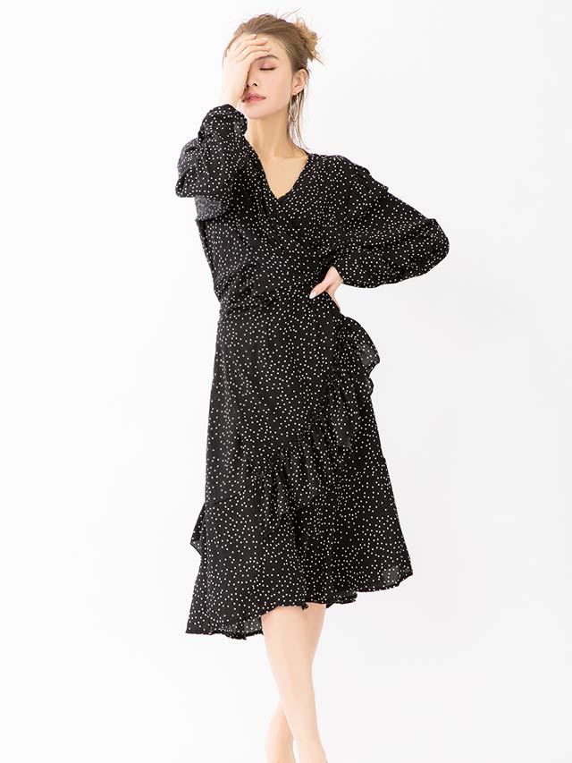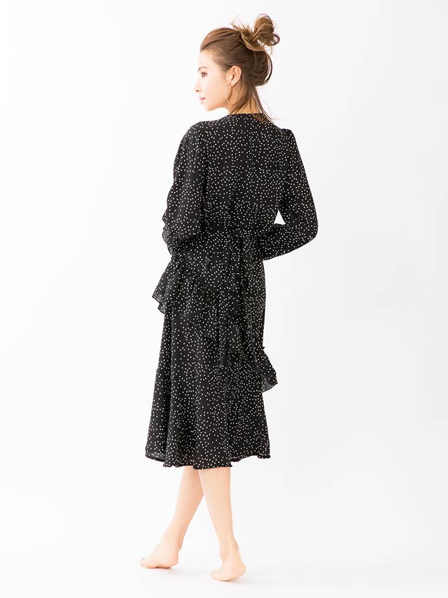 揺れるフリルが軽やかに、華やかに。マルチドットルームワンピース。