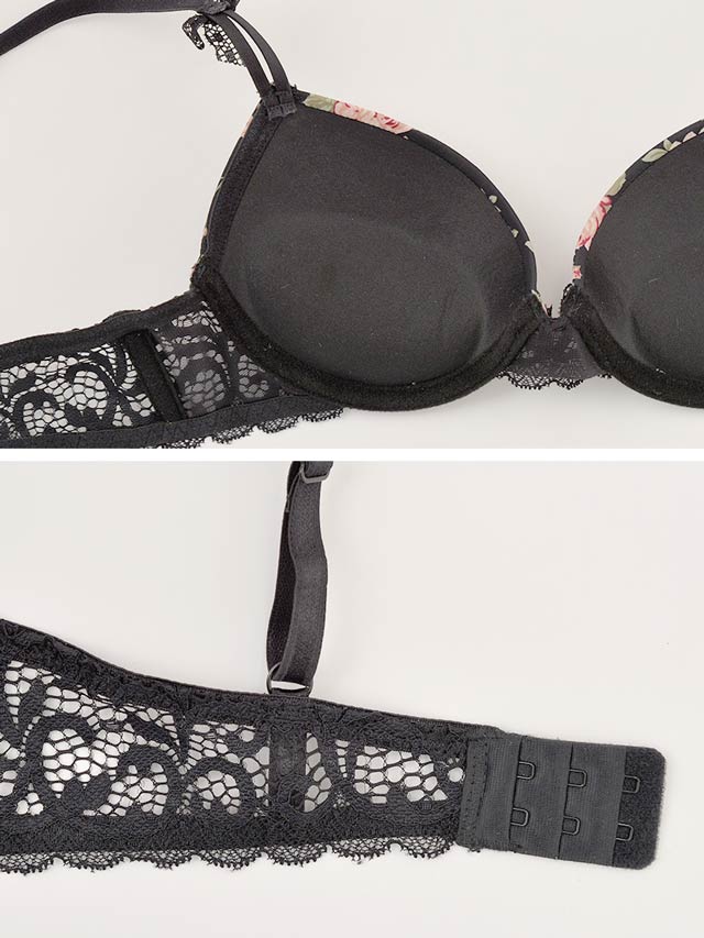 ロマンティックな見た目とは対照的に、下厚のモールドカップでバストをぐいぐい寄せて小胸さんにも谷間を。