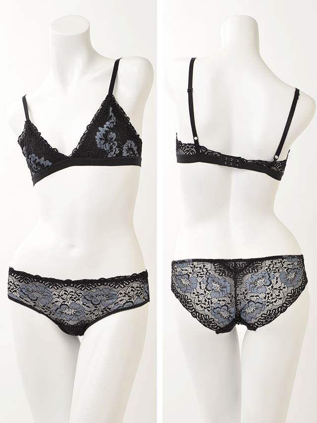 まるで包み込まれたようなレーシィフェイスは凛々しく、はっとするほどセクシー。ノーパッド&ワイヤーがそっと包み込むような軽い着け心地で、作り込まない胸元が自然体の色香を漂わせます。