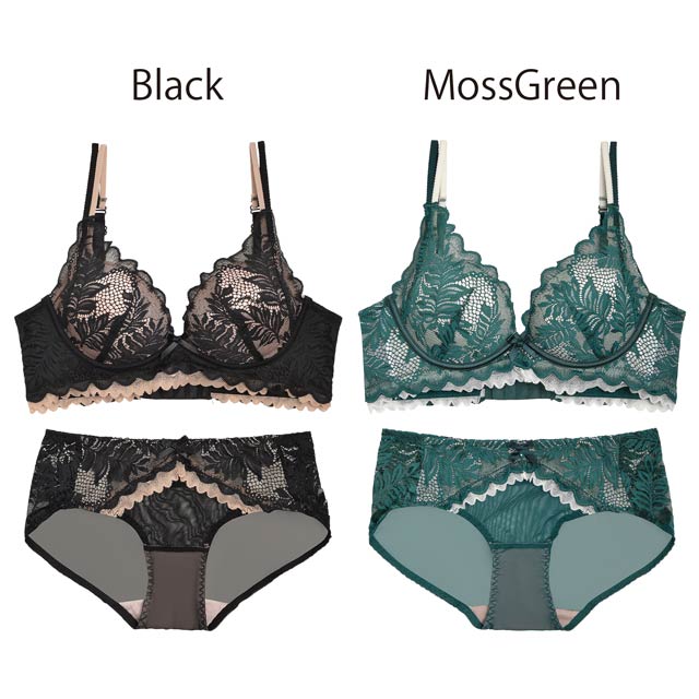 オールレースカットストリング育乳脇高ブラジャー&バック透けフルバックショーツ