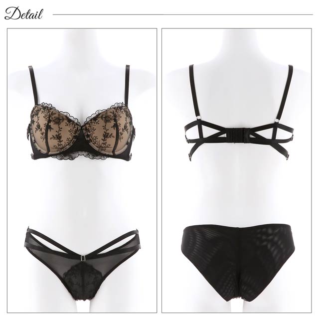 オールレースカットストリング育乳脇高ブラジャー&バック透けフルバックショーツ