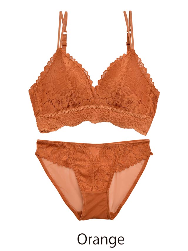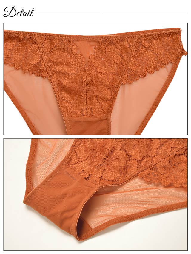 オールレースカットストリング育乳脇高ブラジャー&バック透けフルバックショーツ