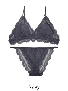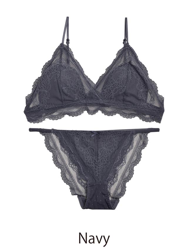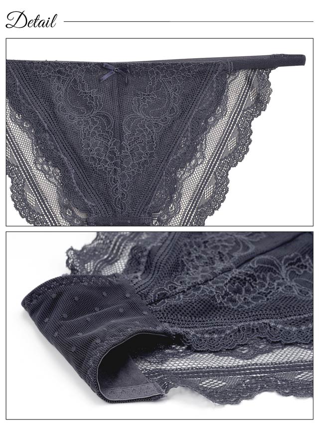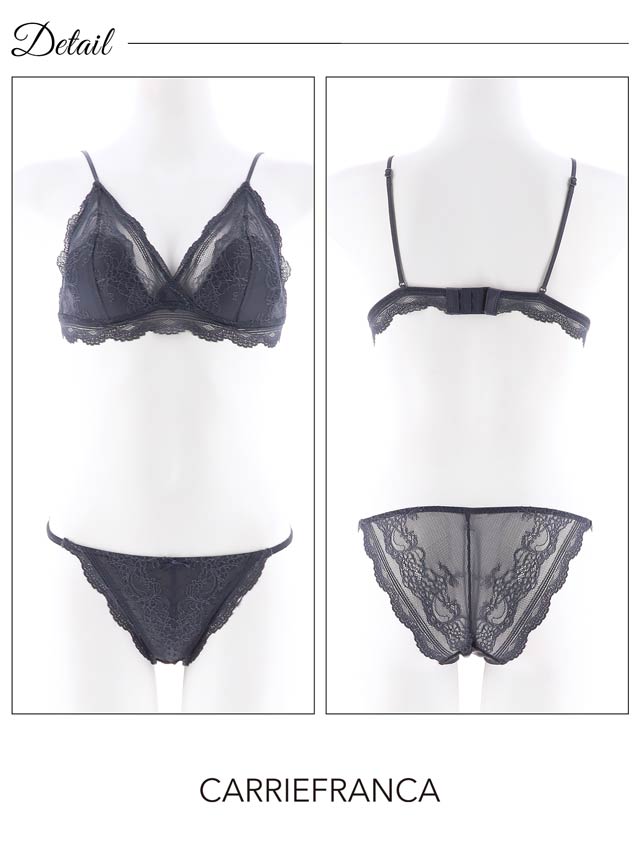 オールレースカットストリング育乳脇高ブラジャー&バック透けフルバックショーツ