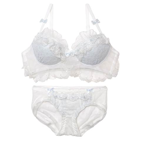 オールレースカットストリング育乳脇高ブラジャー&バック透けフルバックショーツ