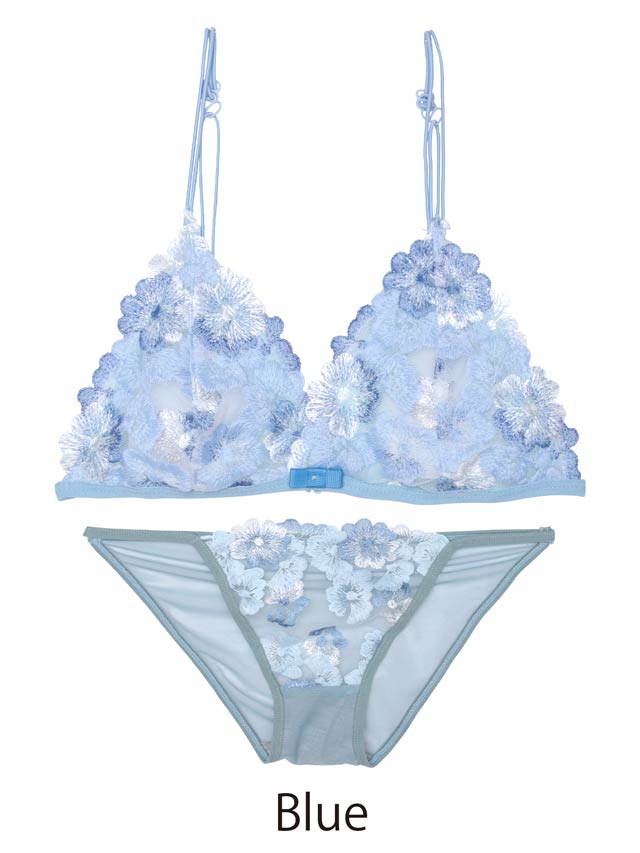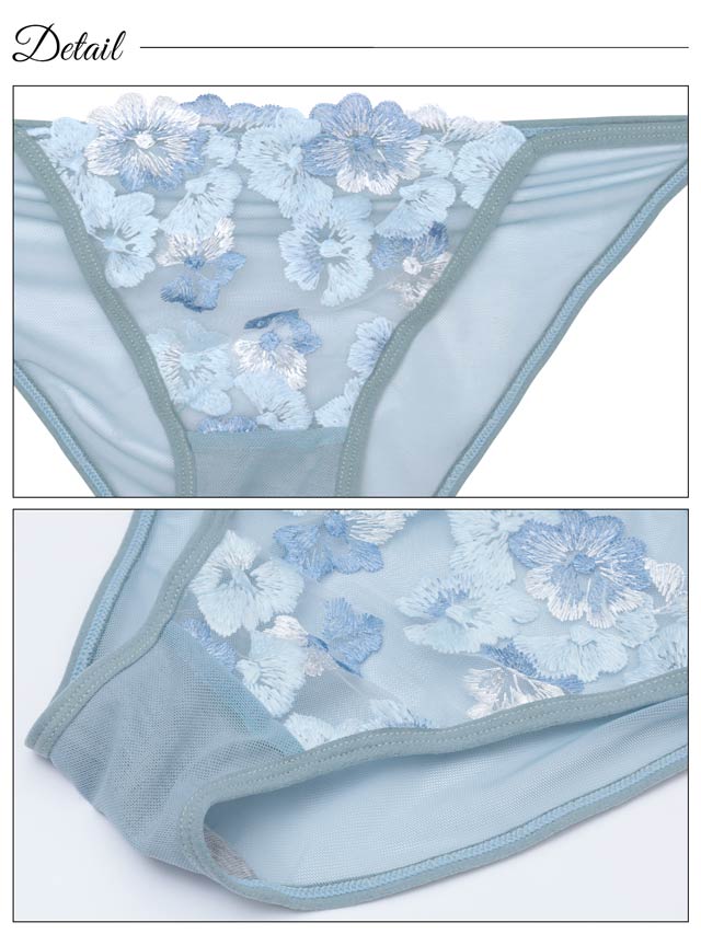 ダスティブルームエンブロイダリー育乳脇高ブラジャー&バック透けフルバックショーツ