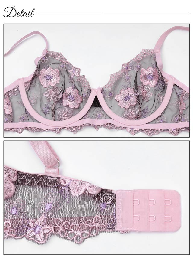 ダスティブルームエンブロイダリー育乳脇高ブラジャー&バック透けフルバックショーツ