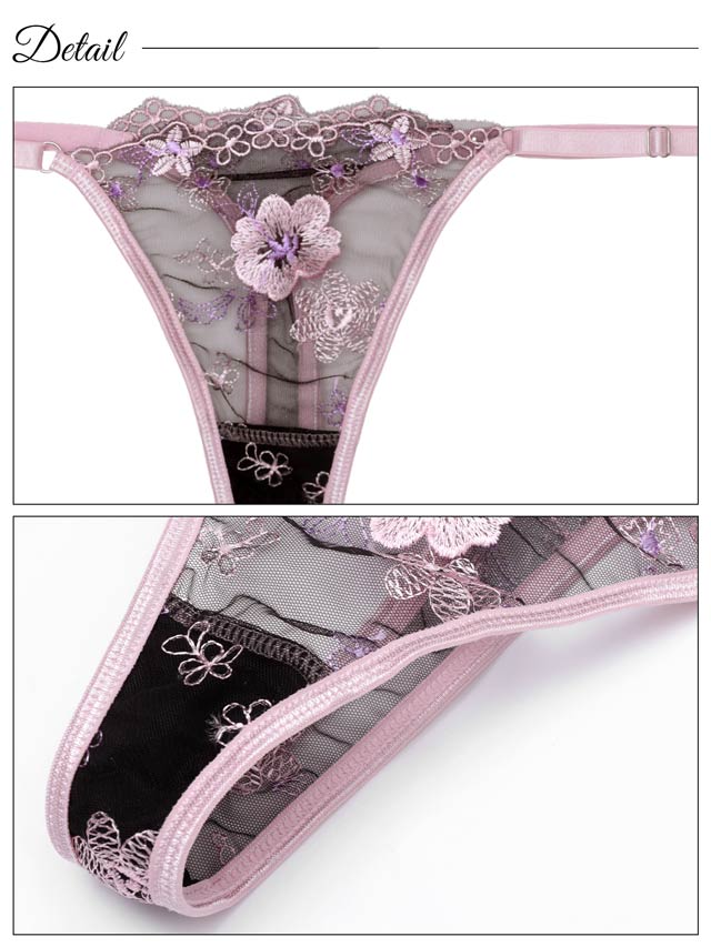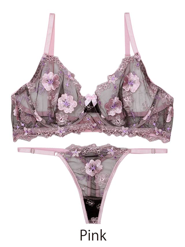 12/2再販!ダスティブルームエンブロイダリー育乳脇高ブラジャー&バック透けフルバックショーツ[激売れ]