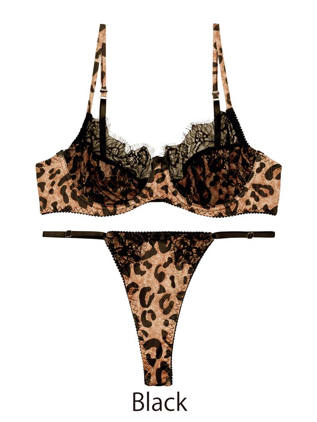 セクシー&クールなレオパード柄×ブラックレース合わせが刺繍的なランジェリー。