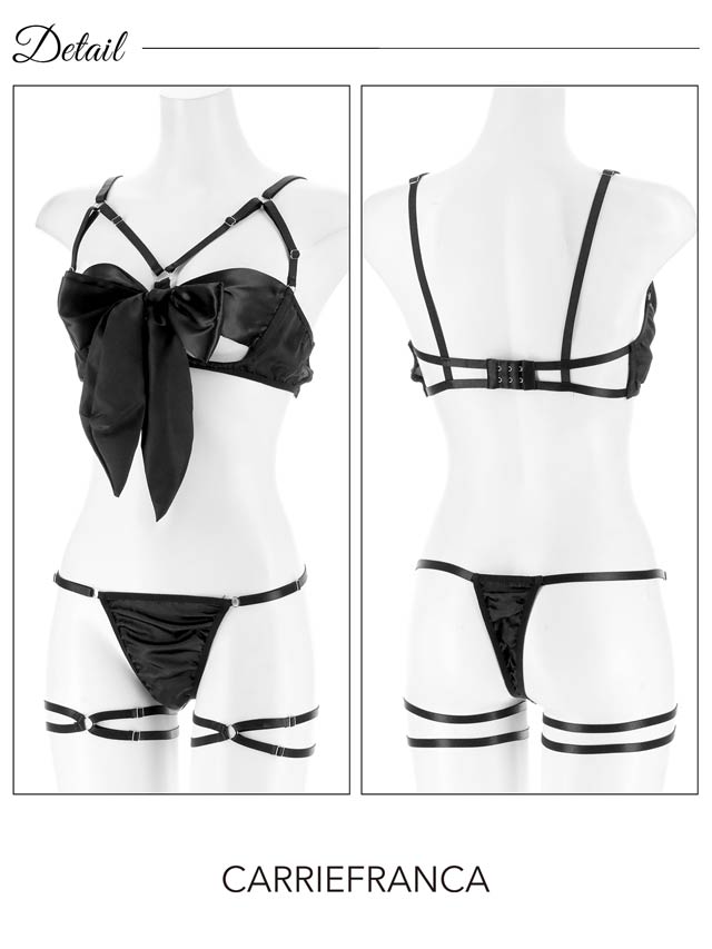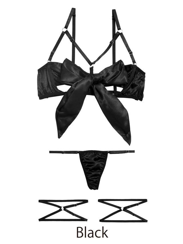 思わずほどきたくなるような大きなサテンリボンが目を惹くブラックカラーのランジェリー。