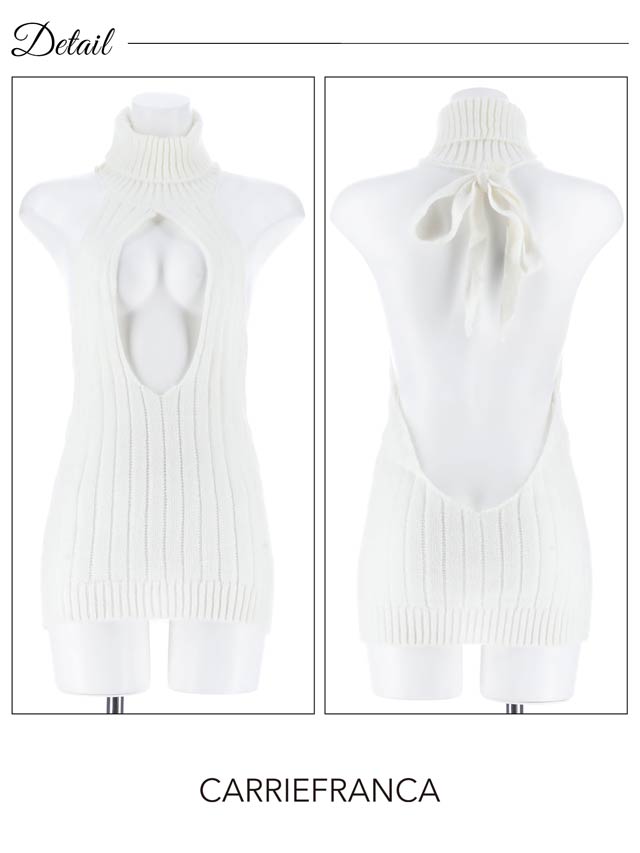 胸元のカットアウト&リボンを結ぶバックレス仕様の大胆な肌見せが360度セクシーさ満載のランジェリー。