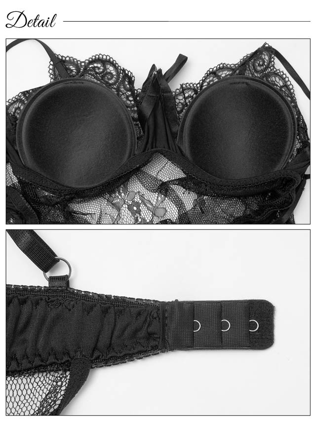 オールレースカットストリング育乳脇高ブラジャー&バック透けフルバックショーツ