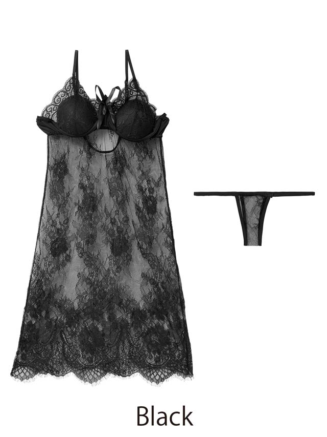 12/17新作![CARRIEFRANCA]シアーレースヌーディーベビードール