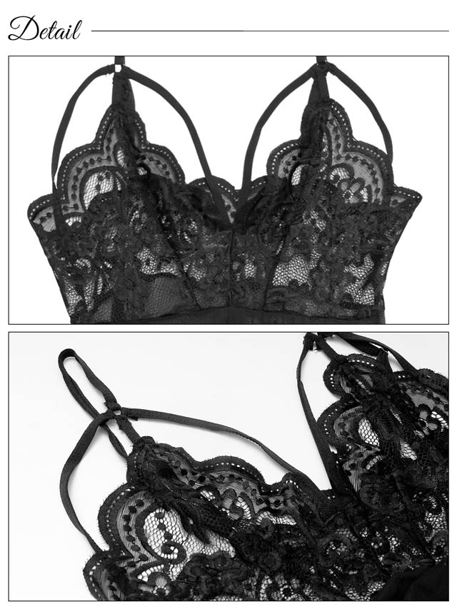 オールレースカットストリング育乳脇高ブラジャー&バック透けフルバックショーツ