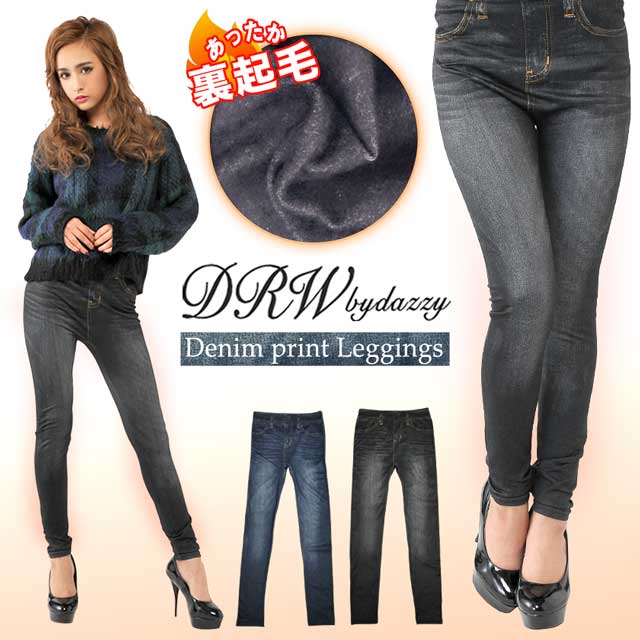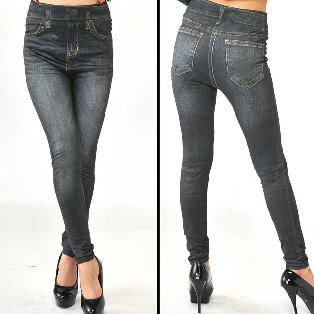 ジーンズをプリントしたデザインのレギンスだから美脚効果抜群!!!