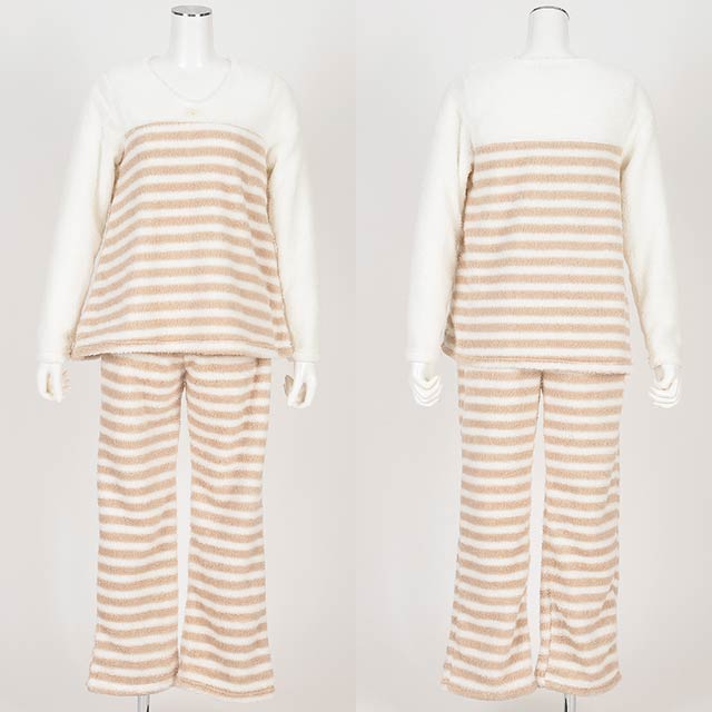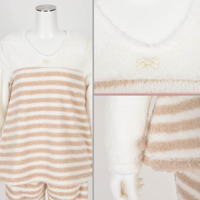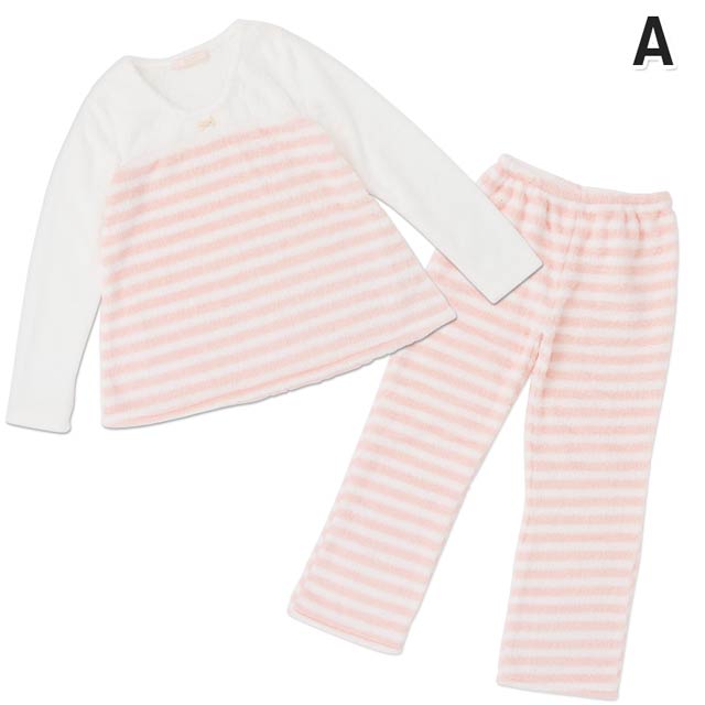 もこもこ素材のあったかルームウェアに、人気のパステルボーダー柄が登場!トップスは切り替えデザインでとってもキュート。シンプルで飽きのこないデザインはこの冬ヘビロテすること間違いなし!お友達にプレゼントやオソロにもおすすめです。