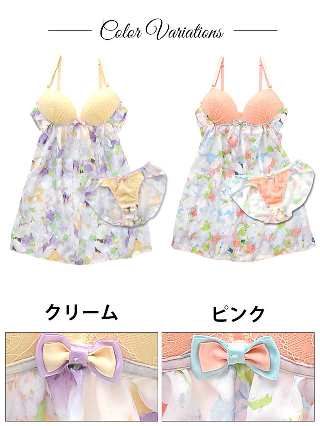 フェミニンさたっぷりのflower柄のベビードールが登場♪なんとキャミソールは「Wパッド」「ホック付」!ベビードールでもしっかりと盛り胸メイクができちゃいます!カップ部とショーツにはコードレースで飾って高級感たっぷり。これを着ればロマンチックな夜に大活躍すること間違いなし!