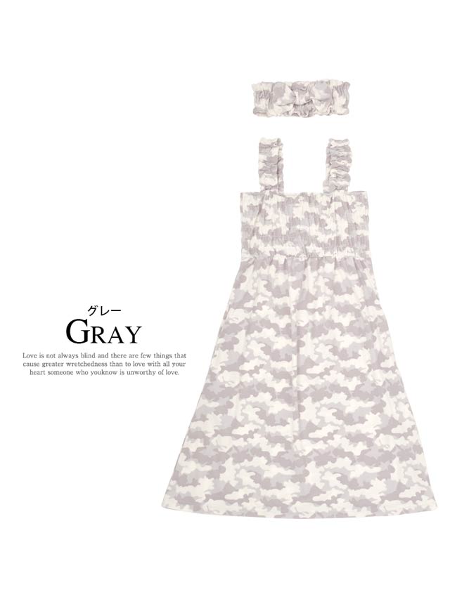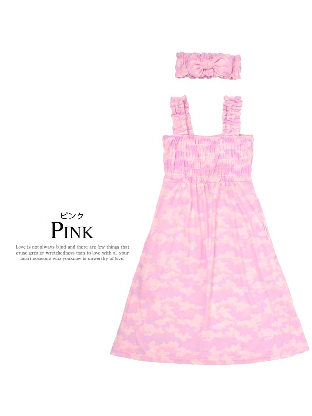 おそろのヘアバンド付き★パステル迷彩ワンピース