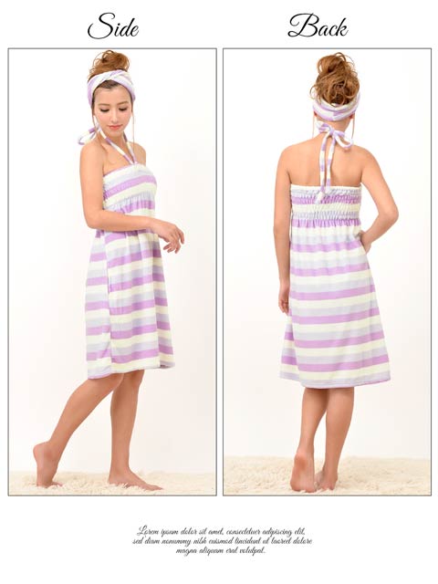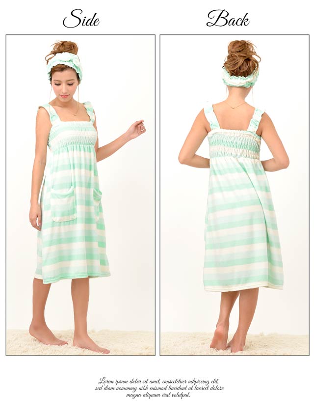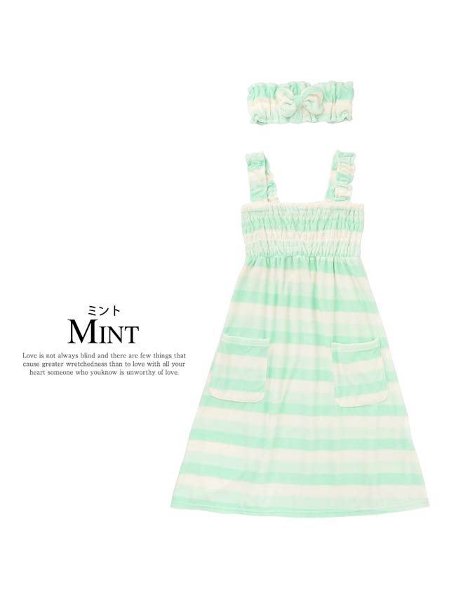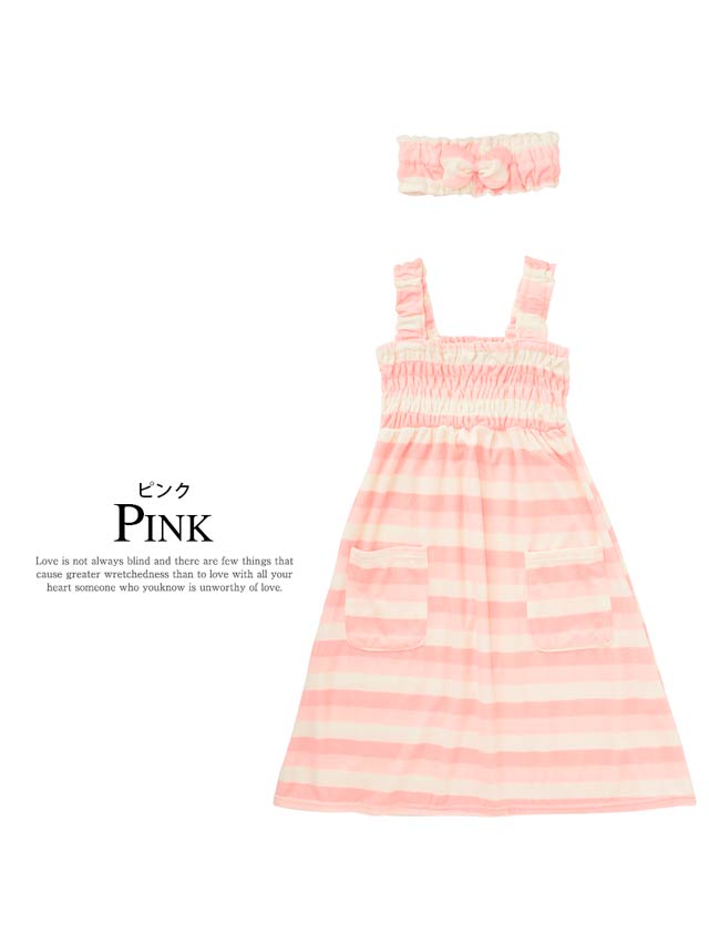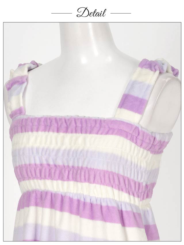 パステルカラーで仕立てたボーダーがガーリーなルームウェア♪左右にスマホが入るくらいのポケットがついています♪セットのターバンはプチリボンもついていてとってもCUTE♪思わず何度も触りたくなっちゃうこのパジャマはカレとのお家デートにも使えちゃいます!