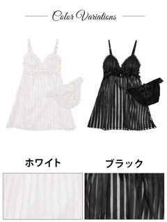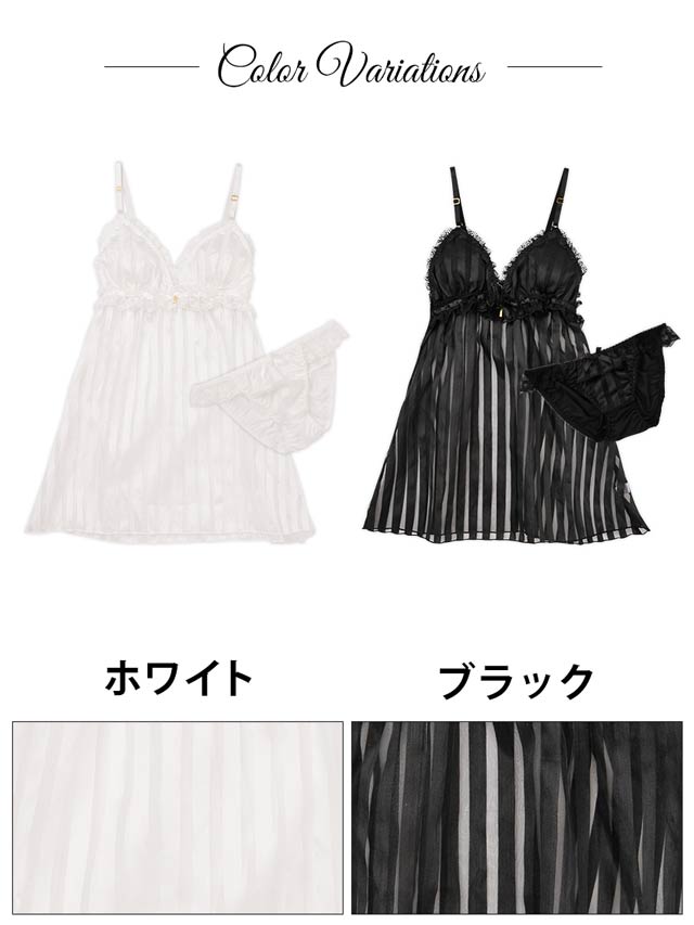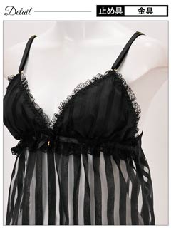 人気のベビードール&ショーツセットにストライプ柄が登場。シアーオーガンジー素材なので透け感がたっぷり♪柄の間からうっすらと透ける肌にカレもドキッとしちゃうかも...♪ショーツは可愛いながらセクシーさも忘れないレースライン。ちょっと大胆になりたいあなたにおすすめです!