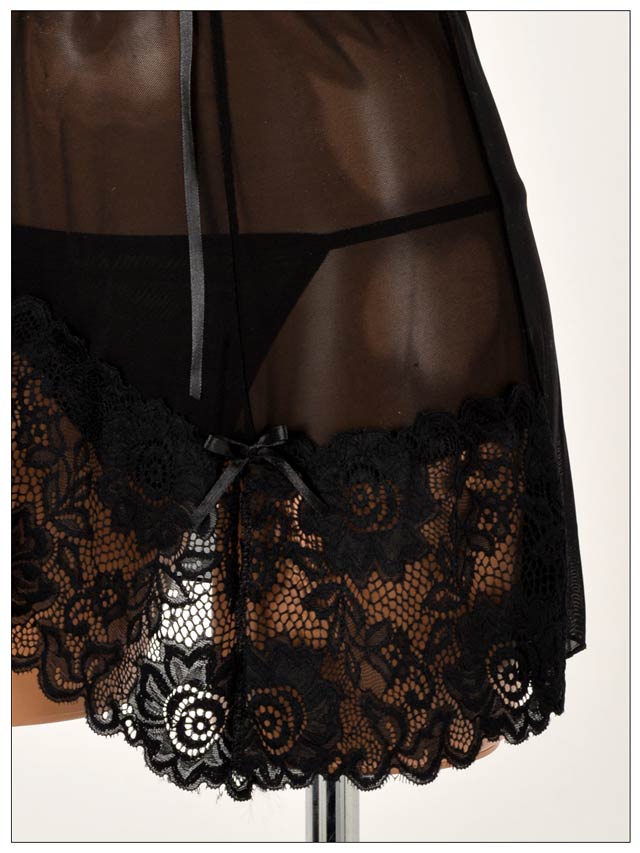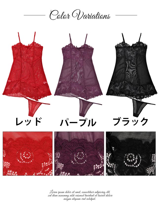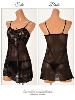 透け素材で仕立てた、大人のSEXYベビードール♪♪バスト部と裾に刺繍レースとプチリボンを飾りました。レース越しにみえる肌は、男の本能をくすぐるポイントに★ショーツは同じ透け素材のTバック。「最近マンネリかも…」という子はこのベビードールで彼を挑発しちゃお!
