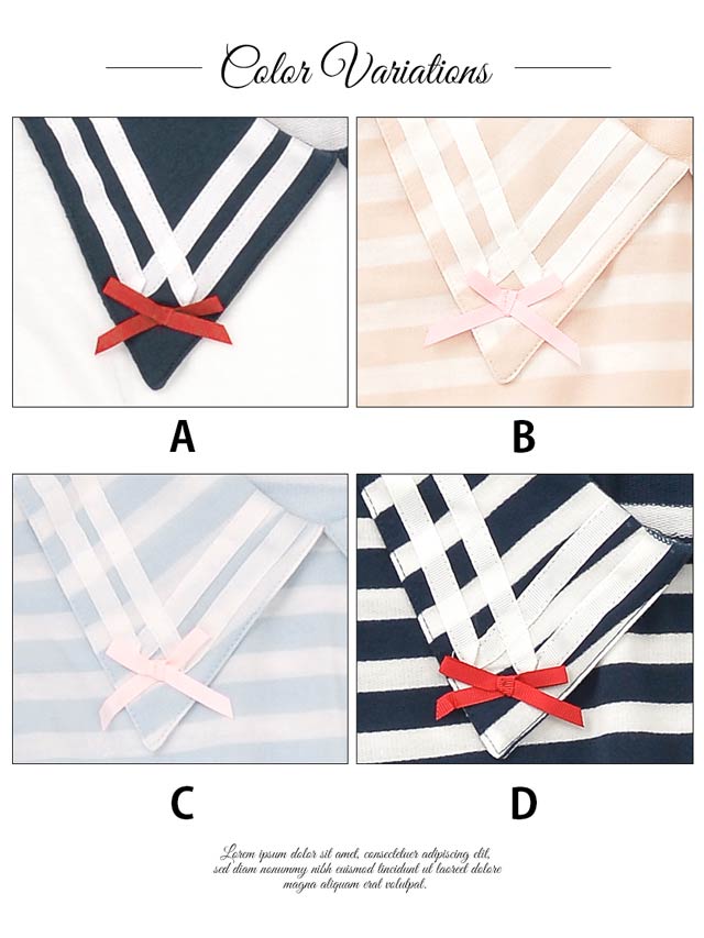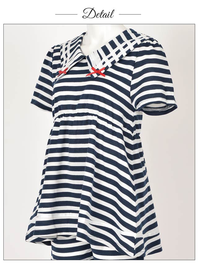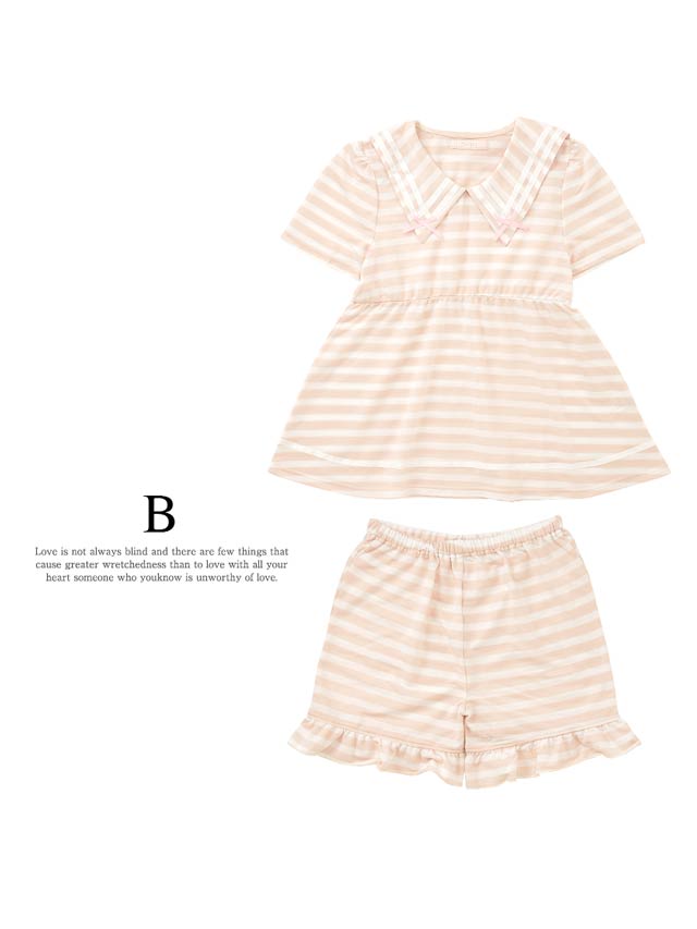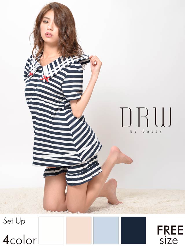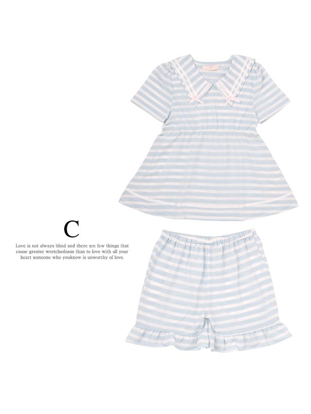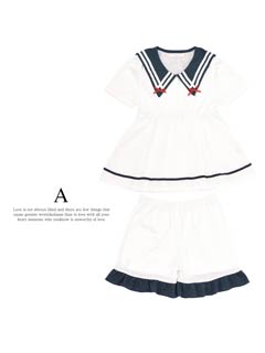 絶対に可愛い!セーラー襟のルームウェア。夏にぴったりなマリンスタイルはおうちデートにも活躍すること間違いなし!肌さわりも抜群&薄手素材だから、暑い夜にもぴったり!ボトムの裾にもフリルを飾って、女の子らしく見せてくれますよ!