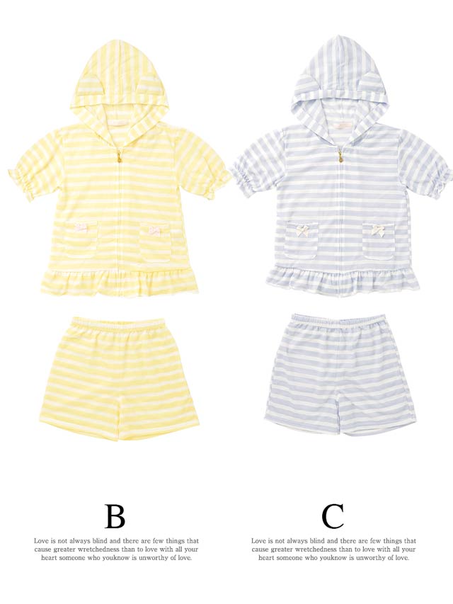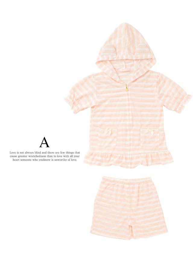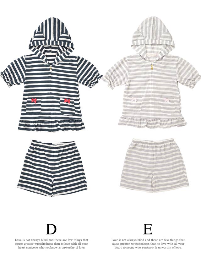 パステルボーダー柄ねこみみパーカー&ショートパンツ