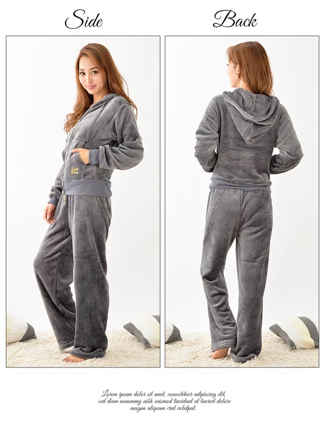 今年の秋冬に絶対着たい!ヘビロテ確実なシンプル&無地のマイクロファイバー生地のルームウェア♪脱ぎ着しやすい前開きタイプのパーカーと足元まであったかの長ズボンのセットアップです。裏表、どちらも触り心地バツグンのふわモコ素材で、まるで毛布に包まれてるようなあったか仕様☆シンプルなデザインだからこそ、子供っぽくなりすぎずに着ていただけます!パーカーにはポケットも付いているのでスマホも入れられます!お家はもちろん、ワンマイルウェアとしてもお使い頂けますよ★