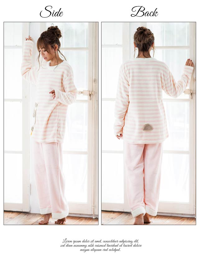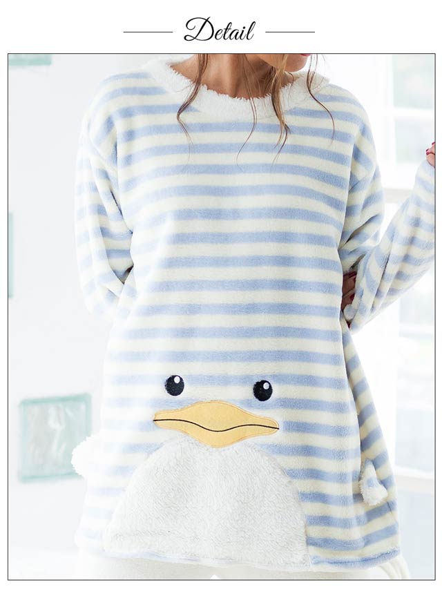可愛いアニマルが飾られた、とってもCUTEなルームウェア♪頭からすっぽりかぶるタイプであったかヌクヌク!寝るとき邪魔になるフードもありません。なかまでモコモコ素材のは本当にうれしいポイント★カラーによってアニマルのモチーフがちがいます♪アイボリーはペンギン、ブラックはクロネコ、ピンクはフクロウ、ベージュはヒツジ。(クロネコとフクロウはポケットになっています)フロントだけでなく、バックにもそれぞれのアニマルのしっぽ付き。本格的に寒くなる前に可愛くてあったかいルームウェアをゲットしてね!