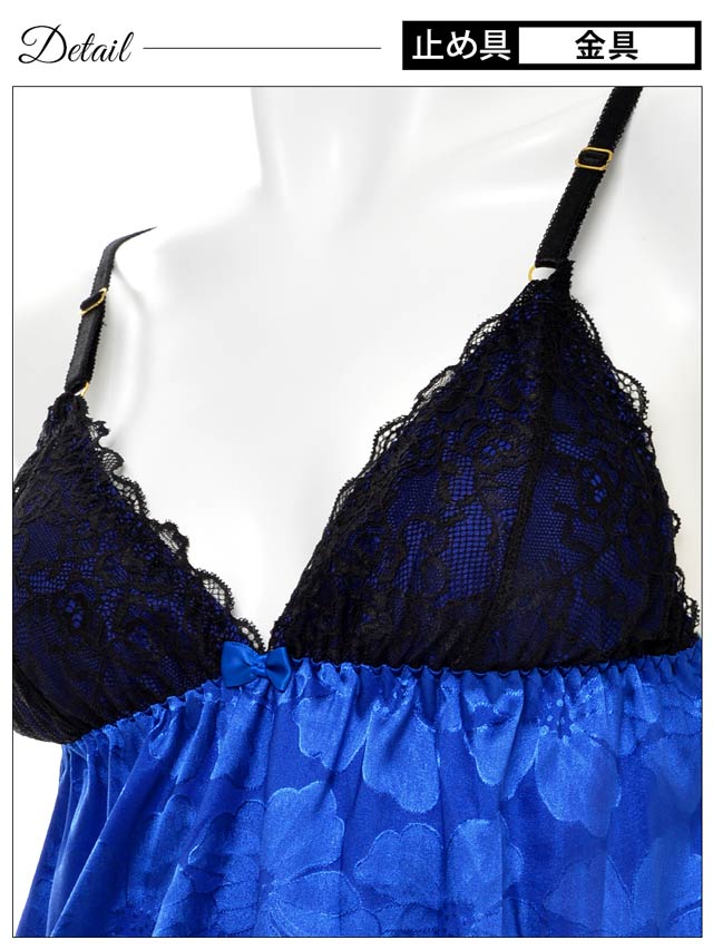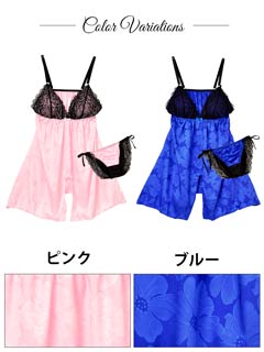同色のフラワー柄を織り込んだサテンの紐パン付きベビードール★同色の大判フラワーを艶サテンで織り込んだ上品なデザイン!ショーツは人気のほどける"紐パン"仕様!!ほんのり透けるショーツバックがエロティック★ブラックレースで色気を醸し出すSexyベビドは絶対カレを落とせる勝負下着です!!