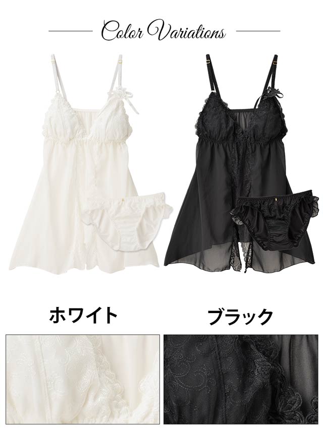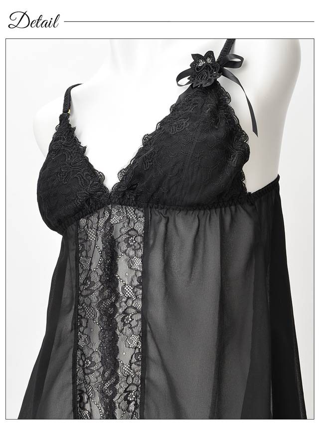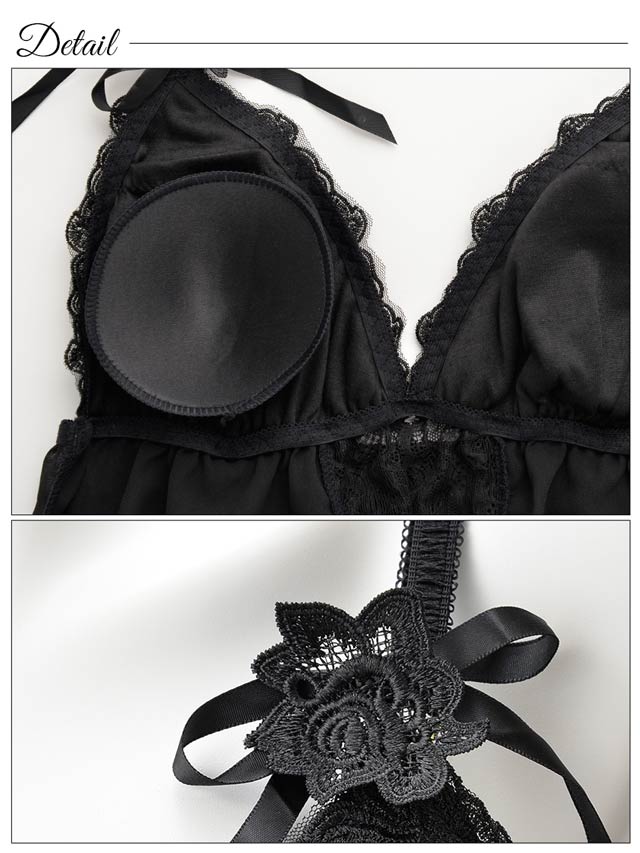 付け替え自由なローズリボンが付いた繊細刺繍レースのベビードール★透け感のあるチュールに細やかな刺繍を施した高級感溢れるデザイン♪薔薇の刺繍モチーフが付いたリボンは取り外しが可能★付ける位置を変えて自分だけのオリジナルランジェリーが作れます!ラグジュアリーなSexyベビードールは特別な夜に活躍してくれそうな予感★
