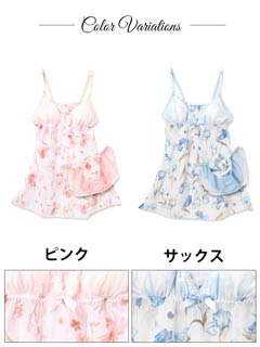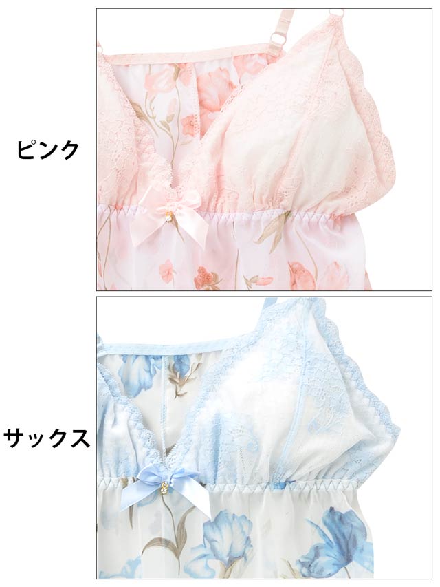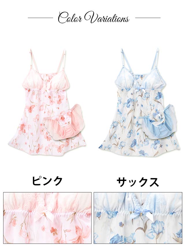 ホワイトシフォンに優しく描かれた水彩タッチの花柄が可愛いランジェリー♪お花の色と同じレースで仕上げたパステルカラーのフェミニン♪フロントにはリボンとラインストーンチャームが飾られ上品なRich感をプラス。Wラインのフルバックでちょっぴり色っぽさも♪大人の女性に似合う花柄ランジェリーはデートにもオススメの1着です☆