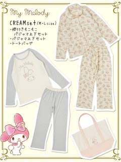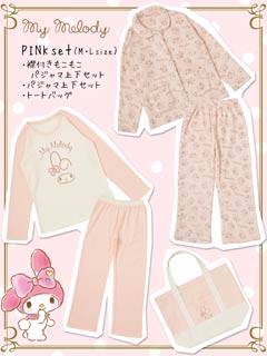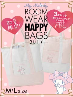 マイメロディのパジャマが2点とキュートなトートバッグが入ったお得な福袋♪マイメロディが全面にプリントされたふわもこなパジャマと、シンプルなマイメロディのデザインが目をひくパジャマのセット。しかも、普段使いにもピッタリなトートバックもついてきます。着心地もリラックスタイムにピッタリ♪